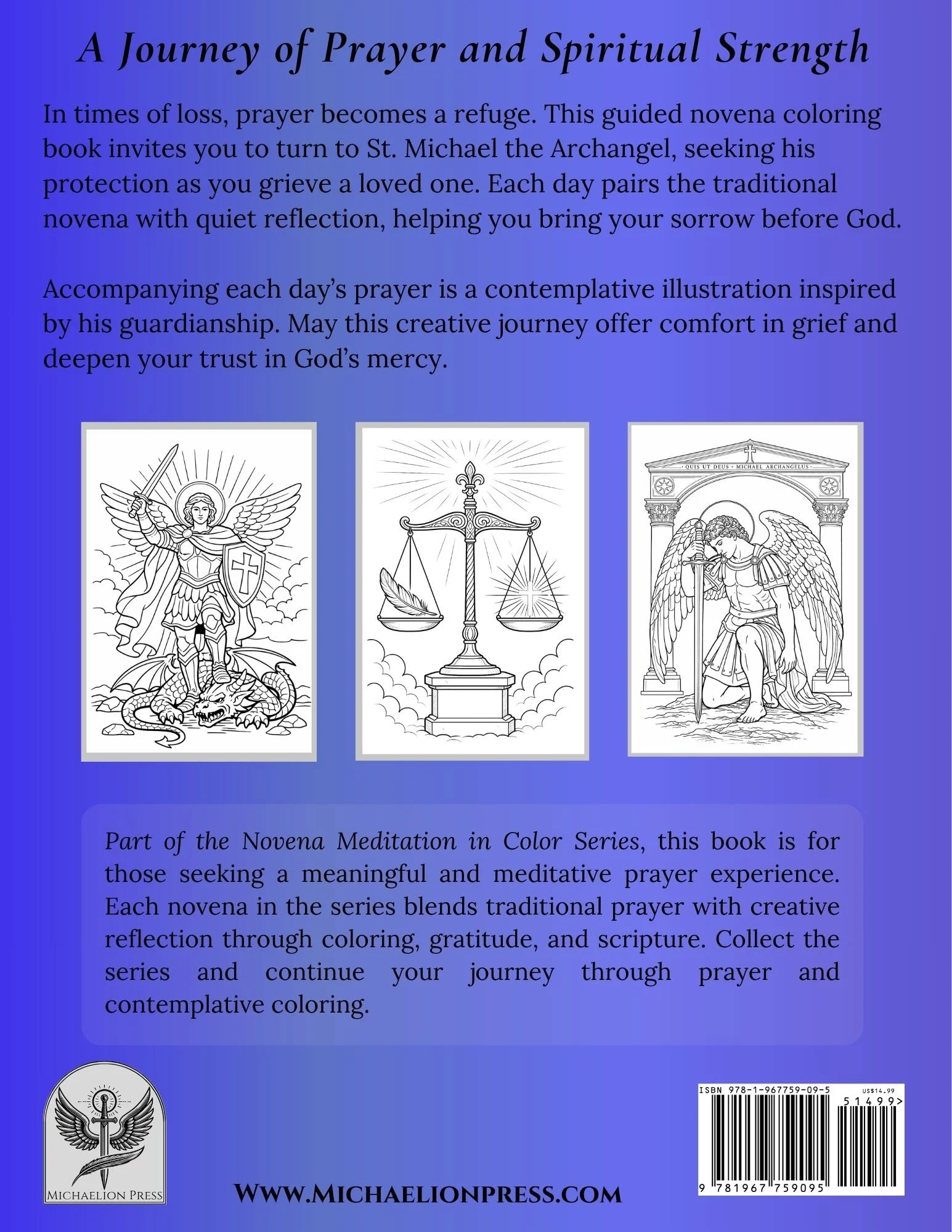Embark on a guided path through grief, prayer, and reflection with the St. Michael the Archangel Novena & Coloring Book: Finding Light in the Shadow of Loss. Created especially for those mourning the loss of a loved one, this devotional offers a structured and contemplative way to bring sorrow before God under the protection of St. Michael.
